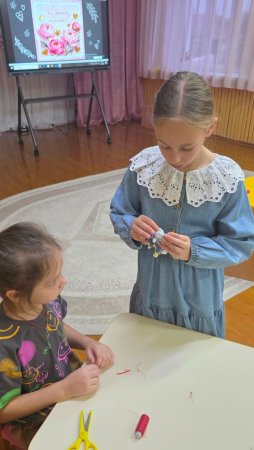 Валерия познакомила ребят с историей появления праздника День бабушек и предложила сделать подарок бабушкам в технике «канзаши». Модератор познакомила учащихся с данной техникой. Под ее руководством дети сделали цветок, который подарят дорогим бабушкам.В гостях у воеводы