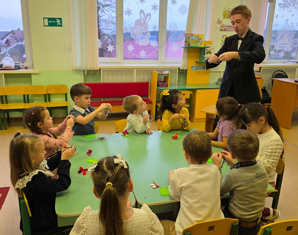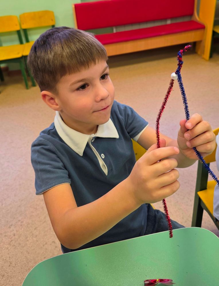 Осталось совсем немного времени до наступления самого долгожданного праздника. Новый год полон тайн, сюрпризов и волшебства. Это сказочное время предвкушения подарков, исполнения желаний и чудес. И, конечно, это нарядная ёлка, запах хвои и мандаринов, сверкающие огоньки, громкие хлопушки и разноцветные яркие ёлочные игрушки. Так, в рамках инновационной деятельности и в преддверии Нового года 17 декабря для воспитанников подготовительной группы «Курносики» детского сада «Непоседа» города Усмани прошел увлекательный мастер-класс «Новогодняя игрушка», который провел Пожидаев Николай, модератор объединения «Графическая среда» (руководитель Деженина С.В.). Началось мероприятие с беседы о самом долгожданном зимнем празднике. Дети с удовольствием делились впечатлениями о подготовке к Новому году, о том, как они украшают елку разноцветными шарами и гирляндами, как учат стихи и песни для Деда Мороза. Затем, под руководством модератора, дети с азартом принялись за изготовление новогодних елочных игрушек из синельной проволоки. Дети были в восторге от процесса изготовления шариков и сосулек. Ребятам очень понравилось держать синельную проволоку в руках, гнуть ее и скручивать. Интересно было наблюдать за тем, как всего несколько движений превращают отрезок проволоки в забавную игрушку. В группе царила атмосфера дружбы и творчества Мастер-класс оставил массу положительных эмоций и впечатлений у каждого ребенка. Дети были очень довольны своими работами и с нетерпением ждали, когда смогут показать их родителям.