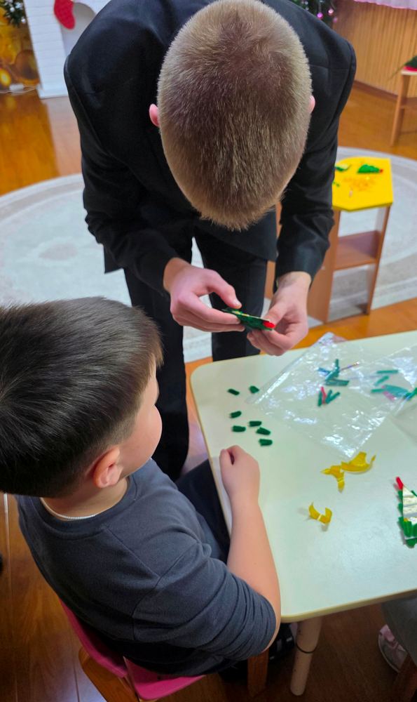 Новый год – это время чудес и подарков, а также ярких красок и блестящих огней. Один из самых популярных символов Нового года – это новогодняя елка, которую принято украшать новогодними игрушками. Так, в рамках инновационной деятельности 22 декабря ребятам логопедической группы «Подсолнушки» детского сада «Солнышко» города Усмани представилась великолепная возможность поучаствовать в мастер-классе «Новогодняя игрушка Ёлочка», который провел для них Пожидаев Николай – модератор объединения «Графическая среда» (руководитель Деженина С.В.) Создание игрушки – это увлекательный процесс, который помог ребятам проявить свою творческую натуру. Под руководством Николая ребята создали необычное украшение – новогоднюю елочку из синельной проволоки, которую украсили разноцветными стразами. Бесконечно радостные эмоции и море позитива получили все участники мастер-класса. Каждая такая маленькая ёлочка станет прекрасным украшением домашнего интерьера и создаст атмосферу настоящего зимнего чуда.