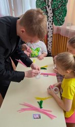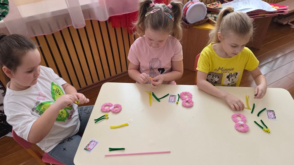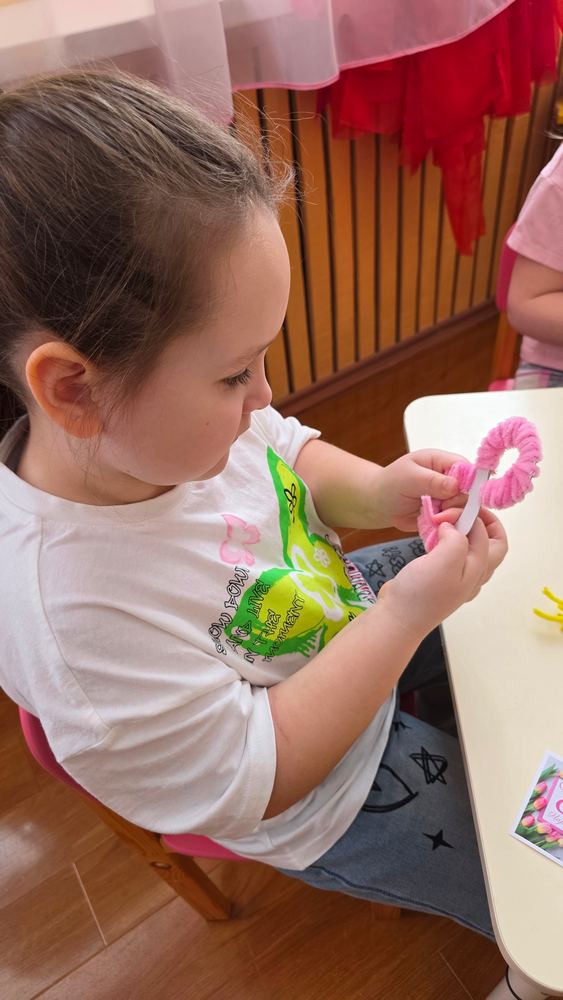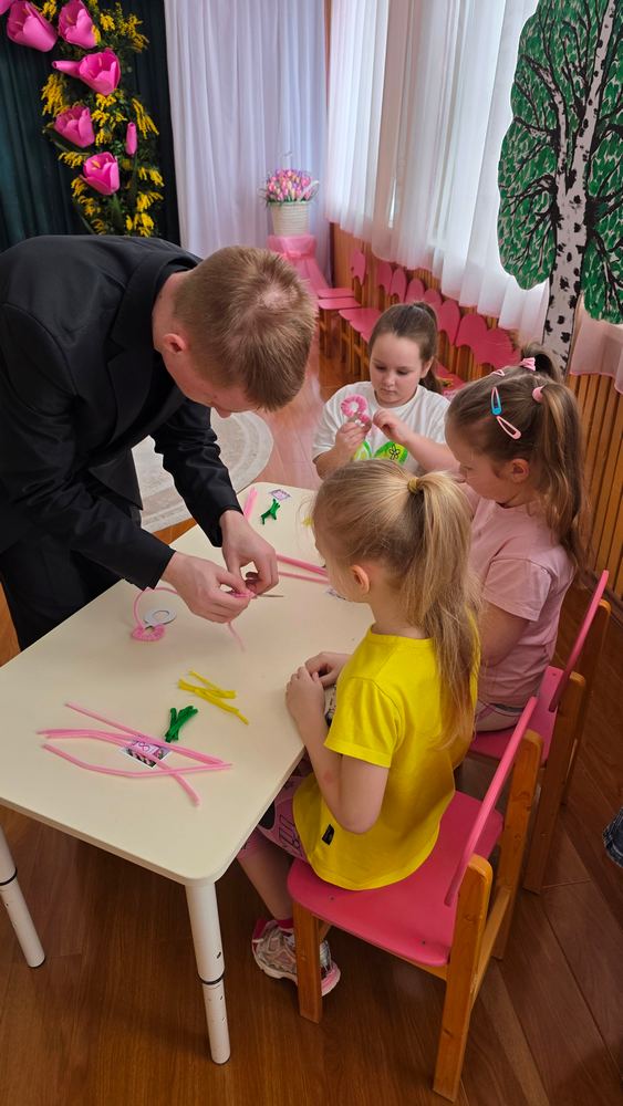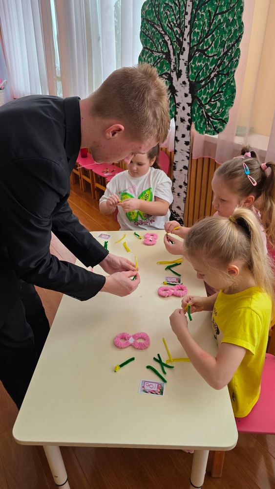 Под таким названием 3 марта в преддверии Международного женского дня для воспитанников подготовительной группы «Ягодка» детского сада «Солнышко» г.Усмани прошел увлекательный мастер-класс по изготовлению сувенира из синельной проволоки «Сюрприз для мамы», который провел Пожидаев Николай, модератор объединения «Графическая среда» (руководитель Деженина С.В.). На мастер-классе ребята учились работать с проволокой, развивая мелкую моторику и творческие способности. Синельная проволока оказалась не только приятной на ощупь, но и легкой в использовании. Под руководством Николая дети создали замечательные подарки в виде восьмерки с букетиком мимозы. Каждый ребенок проявил фантазию и старание, вкладывая в свои работы частичку души и теперь у каждой мамы появится особенный подарок на 8 Марта, созданный с любовью и заботой.