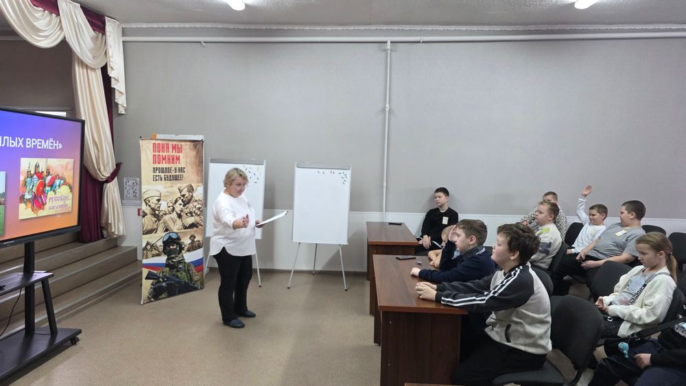 В преддверии Дня народного единства и в рамках мероприятий, приуроченных к Году защитника Отечества 3 ноября в Центре творчества для учащихся 5-7 классов, прошел устный журнал «Летопись мужества», который провела педагог дополнительного образования Деженина С.В. На странице журнала «От героев былых времён» ребята познакомились с воинской одеждой древнерусских воинов и их вооружением, вспомнили известных русских богатырей по репродукции Васнецова В.М. «Три богатыря» и их ратные подвиги. На странице «Эхо войны и память сердца», затаив дыхание просмотрели видеоматериал о начале Великой Отечественной войны. О мужестве и самоотверженности наших солдат, находящихся на специальной военной операции, защищающих Родину и ее граждан, ребята узнали на странице «Герои нашего времени». Вдохновленные искренним желанием поддержать наших воинов, ребята написали письма солдатам. В своих письмах они выразили благодарность и поддержку тем, кто ежедневно рискует своей жизнью ради мира и безопасности. Закончилось мероприятие флешмобом «Вперёд Россия».