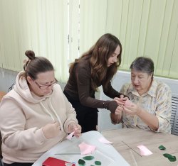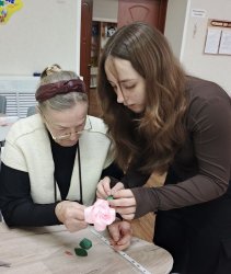В рамках реализации инновационной деятельности и в преддверии Дня матери 28 ноября в Центре творчества для граждан старшего поколения модератором объединения «Студия цветов и подарков» Симачевой Валерией, руководитель Лямзина М. М., проведен мастер-класс «Сувенир «Роза». Вначале Лера познакомила участников мастер-класса с технологией выполнения работы, потом приступили к практической части. Под руководством модератора участники мастер-класса выполнили красивые сувениры. Закончилось мероприятие чаепитием.